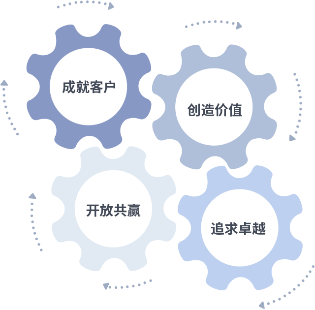 成就客户是一切决策的出发点,创造价值是衡量所有工作的标准,追求卓越是利博做事做人的态度,开放共赢是利博的格局也是最终的结果。价值观的齿轮环环相扣,推动着组织里的每个人不断向前。